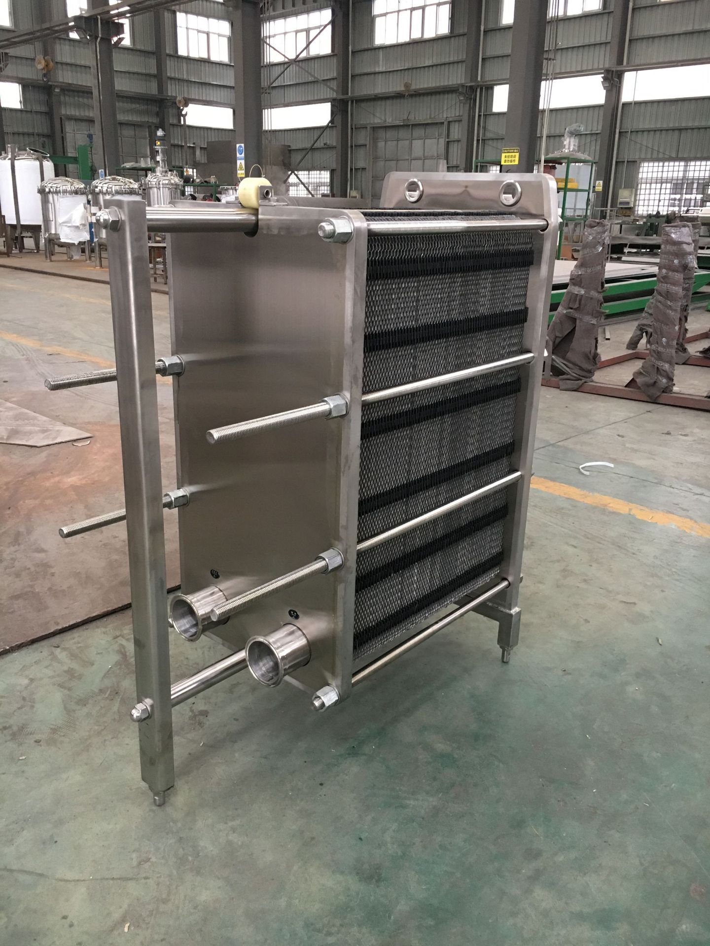 最典型的间壁式换热器,它在工业上的应用有着悠久的历史,而且至今仍在所有换热器中占据主导地位。主体结构由换热板片以及板间的胶条组成。长期在市场占据主导地位,但是其体积大,换热效率低,更换胶条价格昂贵(胶条的更换费用大约占整个过程的1/3-1/2)。主要应用于液体-液体之间的换热,行业内常称为水水换热,其换热效率在5000w/m2.K。为提高管外流体给热系数,通常在壳体内安装一定数量的横向折流档板。折流档板不仅可防止流体短路,增加流体速度,还迫使流体按规定路径多次错流通过管束,使湍动程度大为增加。常用的档板有圆缺形和圆盘形两种,前者应用更为广泛.。由于中国新版GMP的推出,板式换热将逐渐退出食品,饮料,制药等卫生级别高的行业。